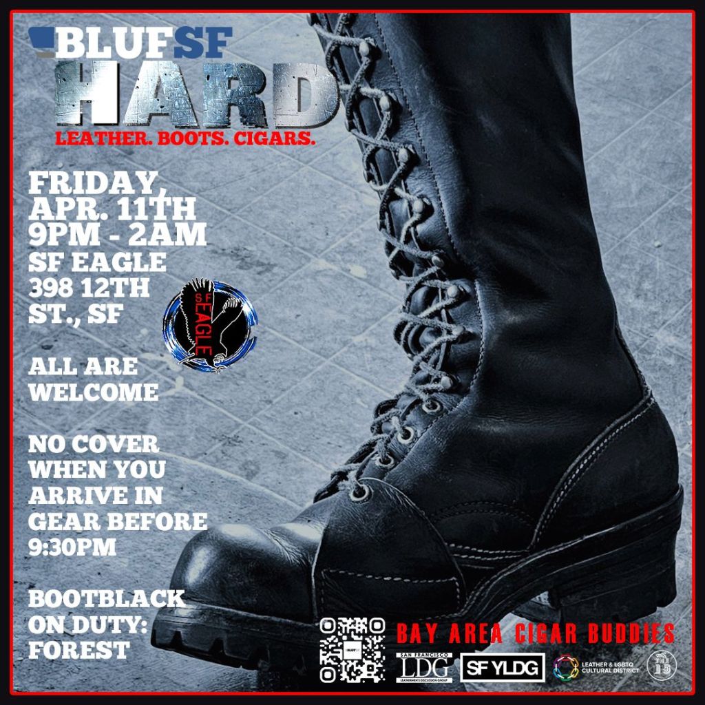 The April edition of BLUFSF went off without a hitch as Leatherfolx from all over geared up and came out for the night . Once again, we shared the space with the Bay Area Cigar Buddies and ASHHOLE. To commemorate Easter, we passed out Easter-themed Ghirardelli chocolates. This edition had more attendees than March due to the improved weather. It was great to see so many studs decked out in Leather gear.