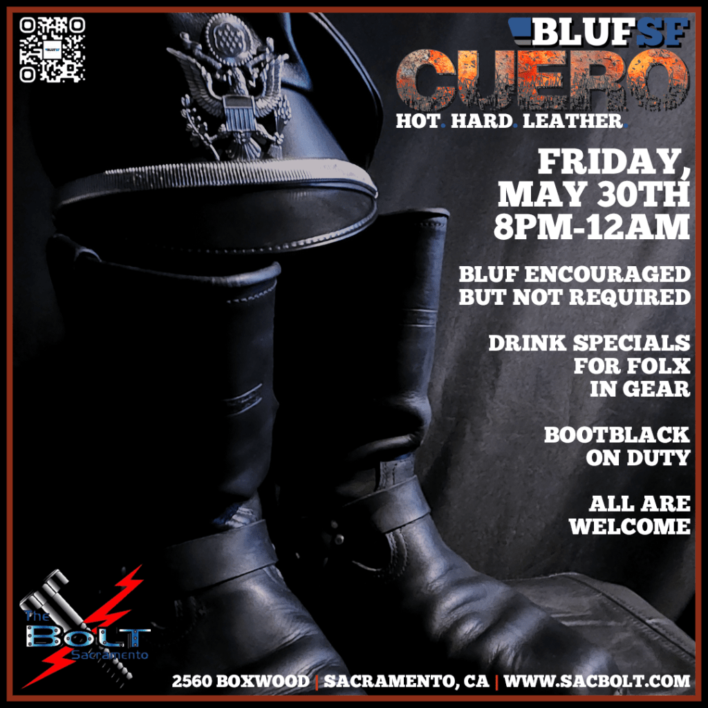 Things are heating up for Summer 2025 with the introduction of BLUFSF CUERO at the Bolt in Sacramento. This new BLUFSF social event extends BLUF’s reach to the California State Capital following a successful collaboration with 2025 Mr. Bolt Leather Colin Gallagher in March 2025. Feedback at the event at Sacramento’s Bolt showed that there is indeed interest in future BLUF events in the city and BLUFSF is than happy to oblige.