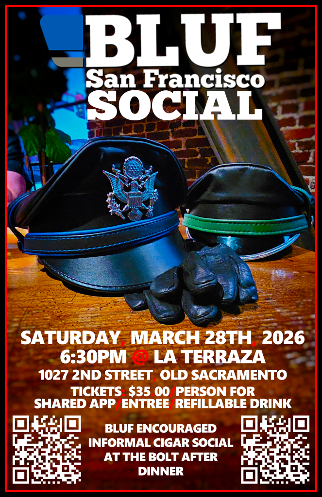 Join BLUF San Francisco (BLUFSF) for a limited ticketed dinner at La Terraza in Old Sacramento at 6:30PM on Saturday, March 28th, 2026.