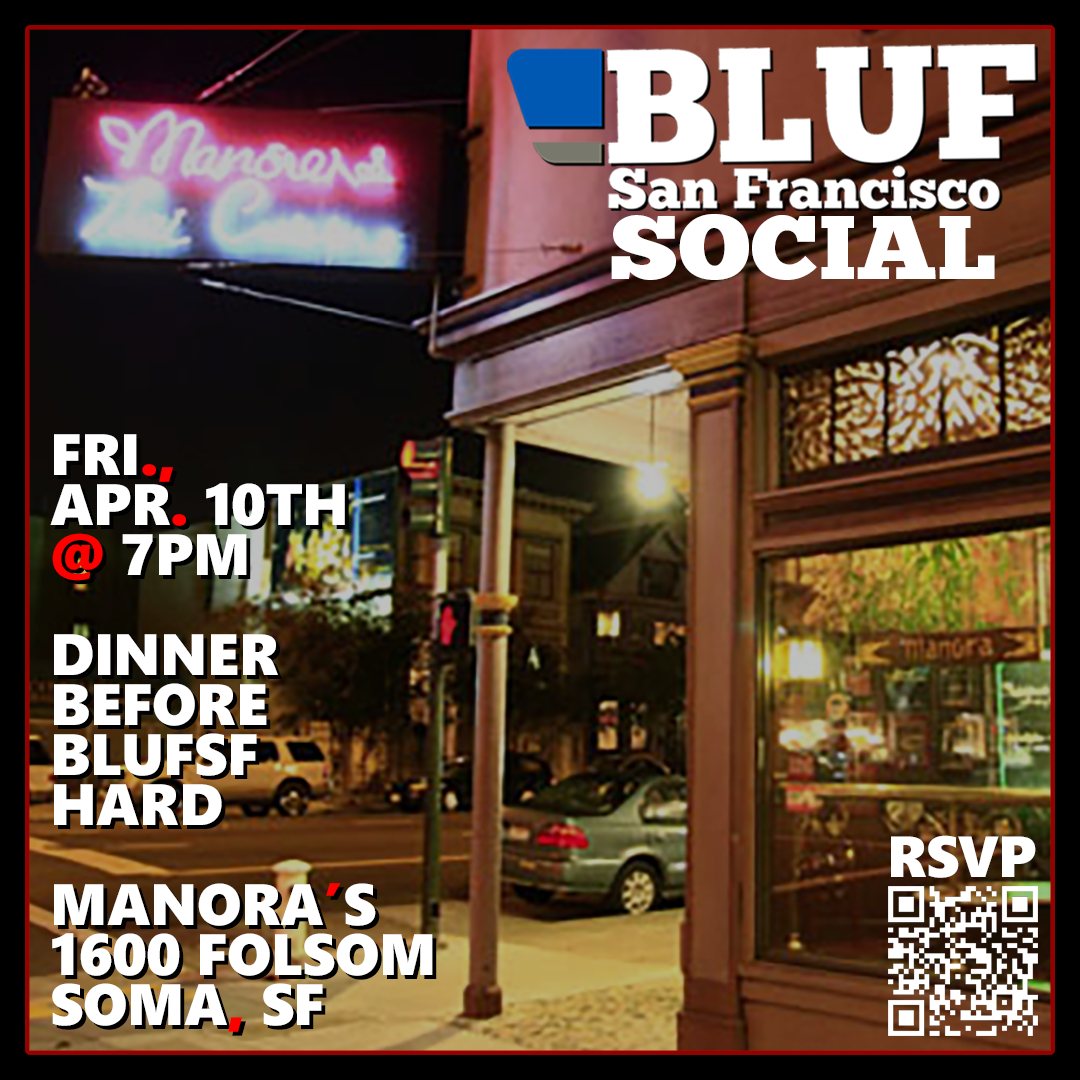 Join us as we gather for dinner at Manora’s Thai Cuisine in SoMa before the April edition of BLUFSF HARD.