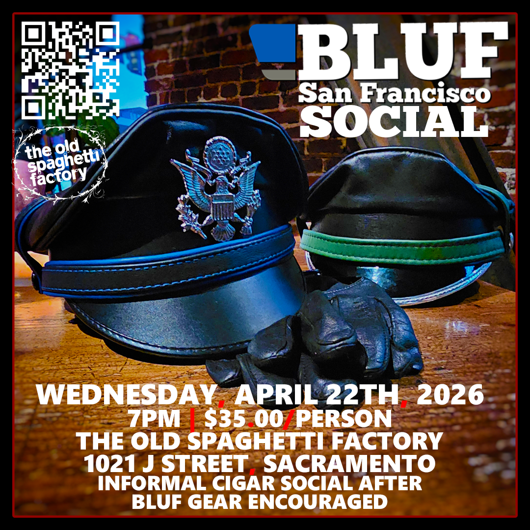 Gear up and gather for dinner with BLUFSF at the Old Spaghetti Factory in Midtown Sacramento as we head into the Mister Bolt Leather 2027 Contest Weekend.